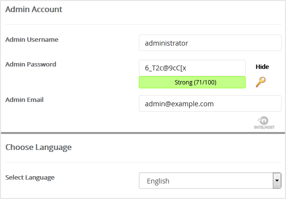 - Admin Username: Your new Kirby username (for security reason do not use the Administrator or the Admin username.)